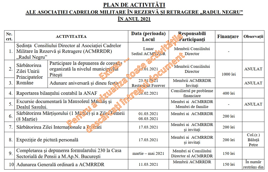 Plan de activități 2021